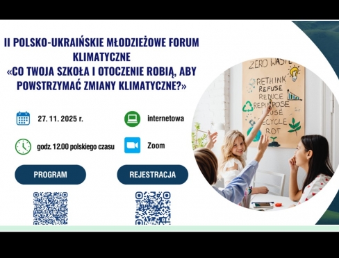 19/11/2025Serdecznie zapraszamy do udziału w II Polsko-Ukraińskim Młodzieżowym Forum Klimatycznym pod hasłem „Co Twoja szkoła i otoczenie robią, aby powstrzymać zmiany klimatyczne?”.