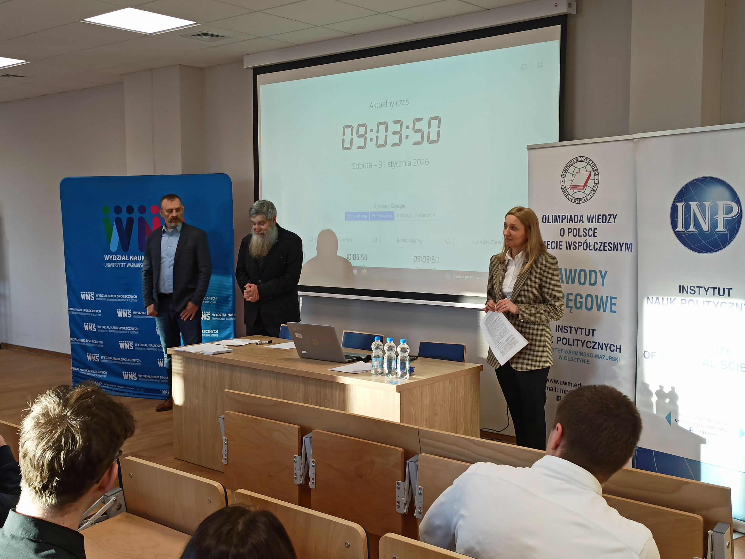 31 stycznia 2026 roku w Instytucie Nauk Politycznych Wydziału Nauk Społecznych Uniwersytetu Warmińsko-Mazurskiego w Olsztynie odbyły się zawody okręgowe Olimpiady Wiedzy o Polsce i Świecie Współczesnym.