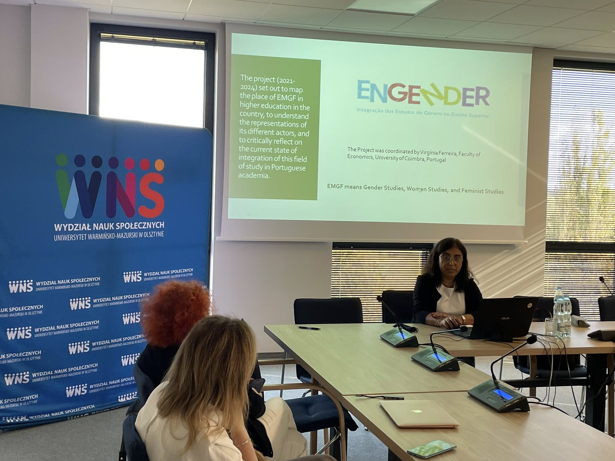 W ramach kontynuacji prowadzonych w Instytucie Nauk Pedagogicznych WNS UWM seminariów naukowych, 10 października 2025 roku pracownicy mieli możliwość wysłuchania interesującego wykładu prof. Cristiny Vieiry z University of Coimbra (Portugalia) pt. "Academic citizenship in gendered work in teaching and researching".
