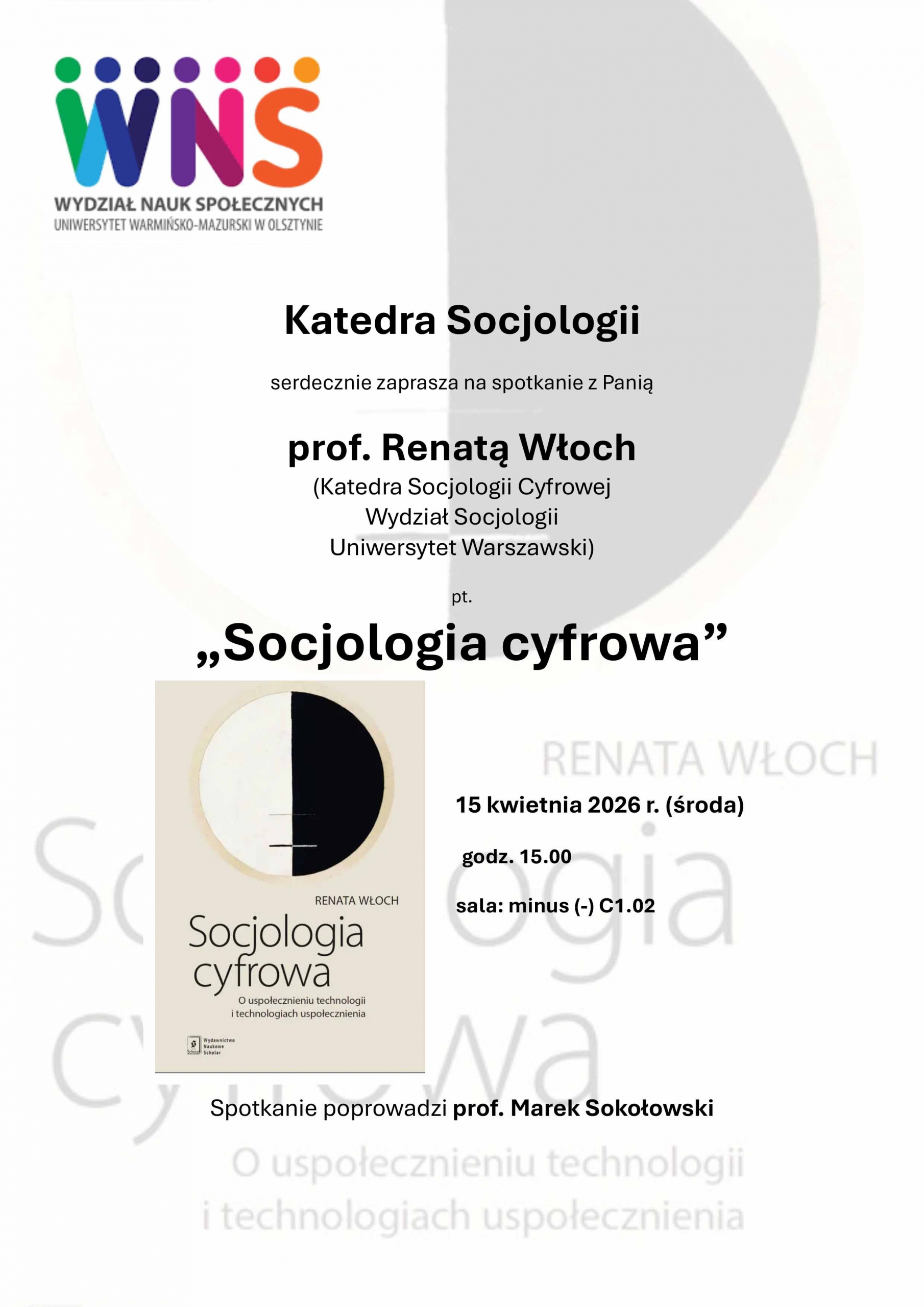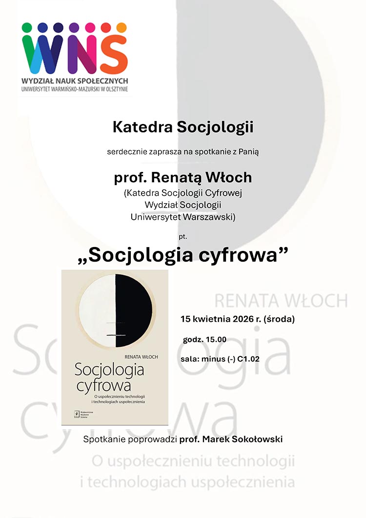 Zapraszamy na spotkanie z Panią prof. Renatą Włoch pt. "Socjologia cyfrowa"
